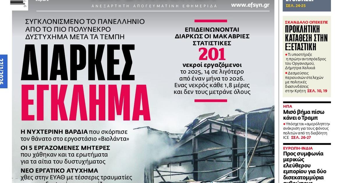 Le journal de gauche Efsyn consacre sa une à l’accident, qui a “profondément choqué la Grèce entière”, avec pour titre “Crime continu” et une photo de l’usine calcinée en pleine page. “Le travail salarié devient de plus en plus dangereux au fil des ans, non seulement pour la santé mais aussi pour la vie même des travailleurs”, regrette le quotidien.